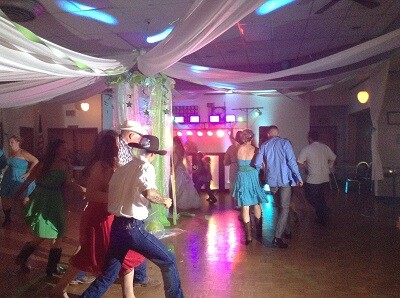 First weekend in August we DJ wedding party in Sidney at the Elks Club. It was a lot of fun to do this one.Nice decoration that changed the vibe of the whole room. We lit centerpiece with our adj waterlight.We used our whole trussing system to light the room up. Also we added fog machine that highlighted our laser lights and chauvet intimidator moving heads. Colors for formal part of the wedding were mostly aqua green and yellow. It was a great wedding to be part of.Thank you for having us